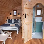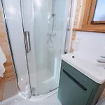 A Glamping Pod 3 Harmony Villa egy walk-in zuhanykabinnal, pezsgőfürdővel és külön WC-vel felszerelt fürdőszobával rendelkezik.